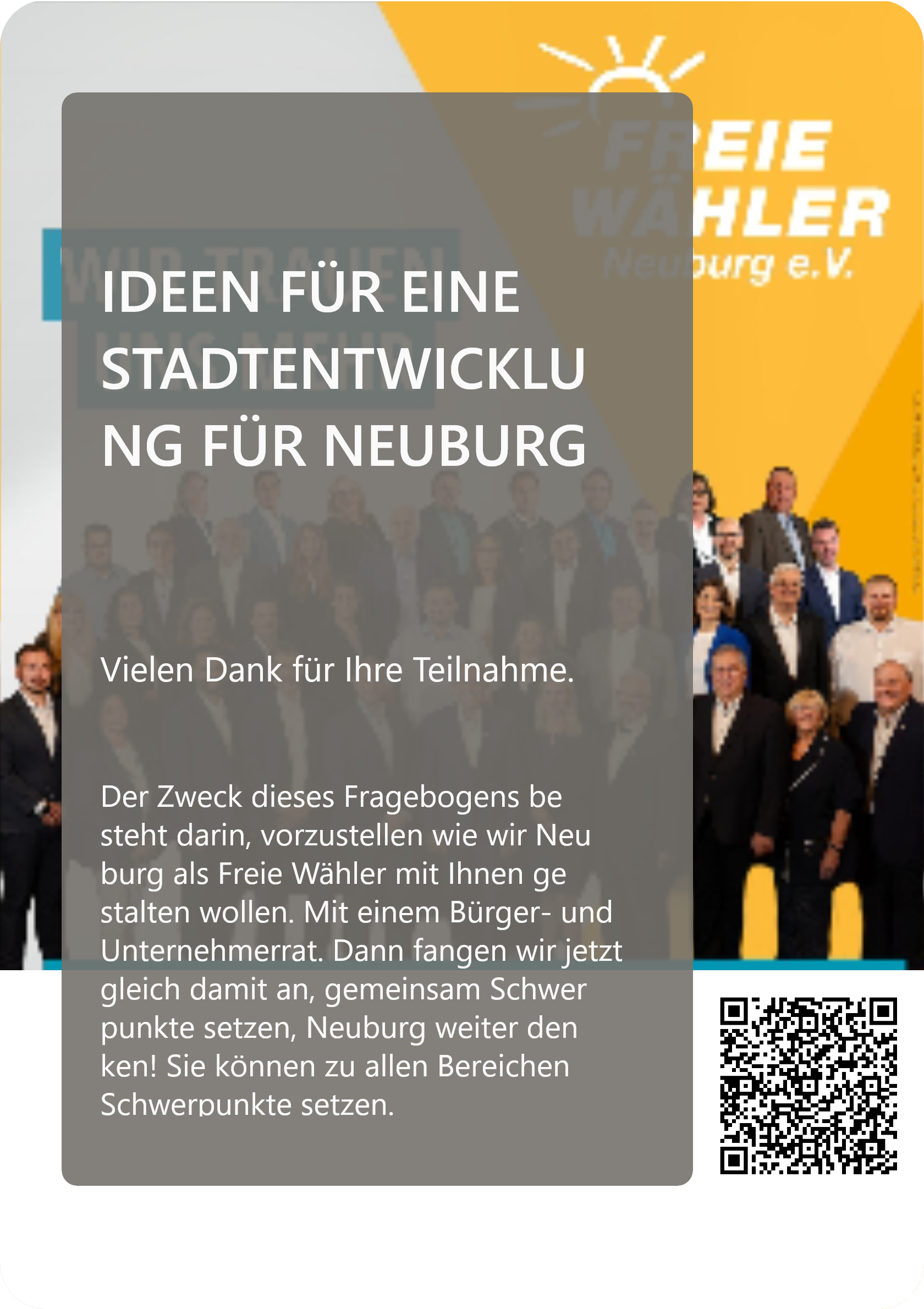 Wenn ihr noch teilnehmen wollt, jetzt ist die Gelegenheit, eure Stimme einzubringen und Neuburg aktiv mitzugestalten.